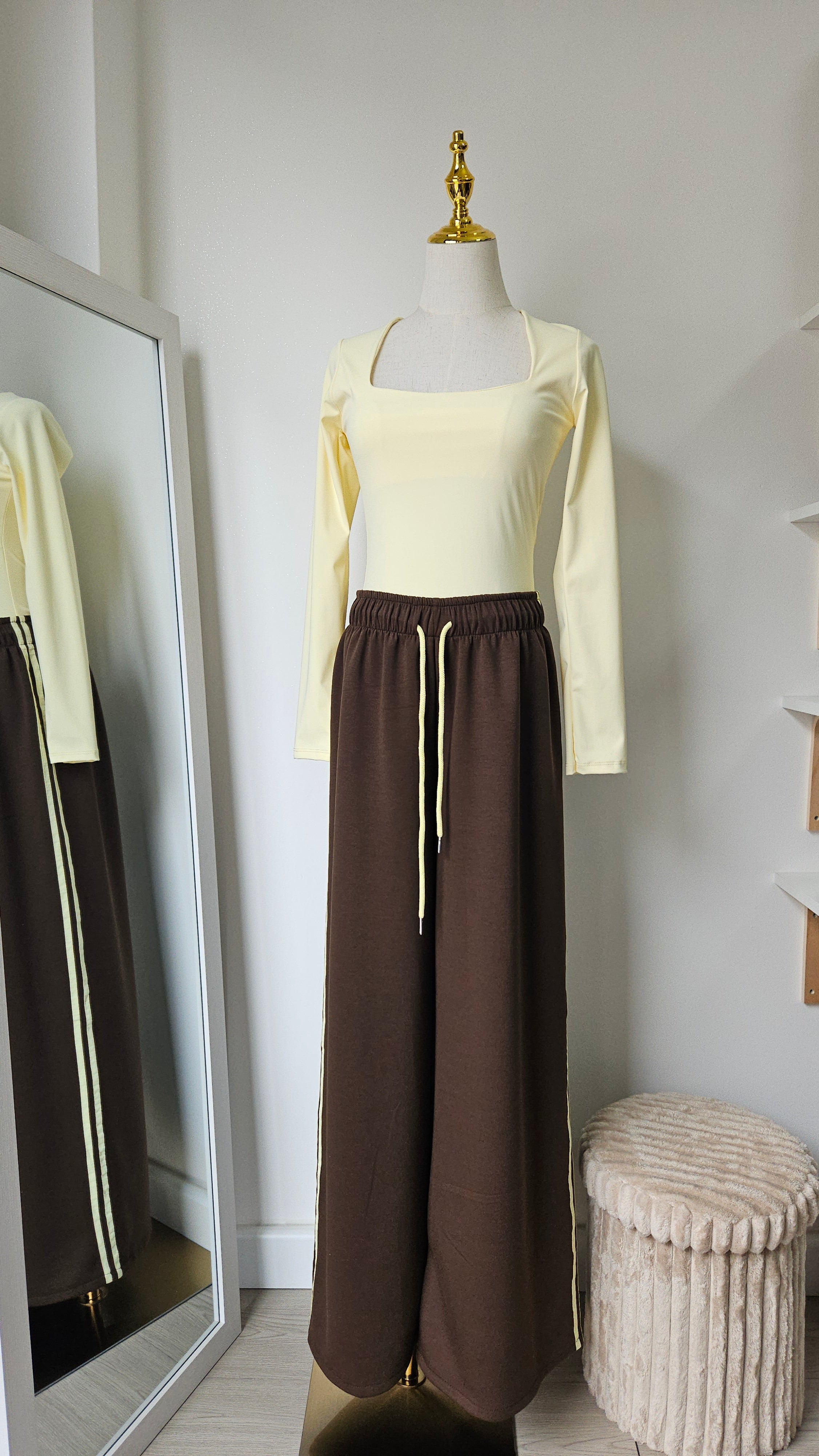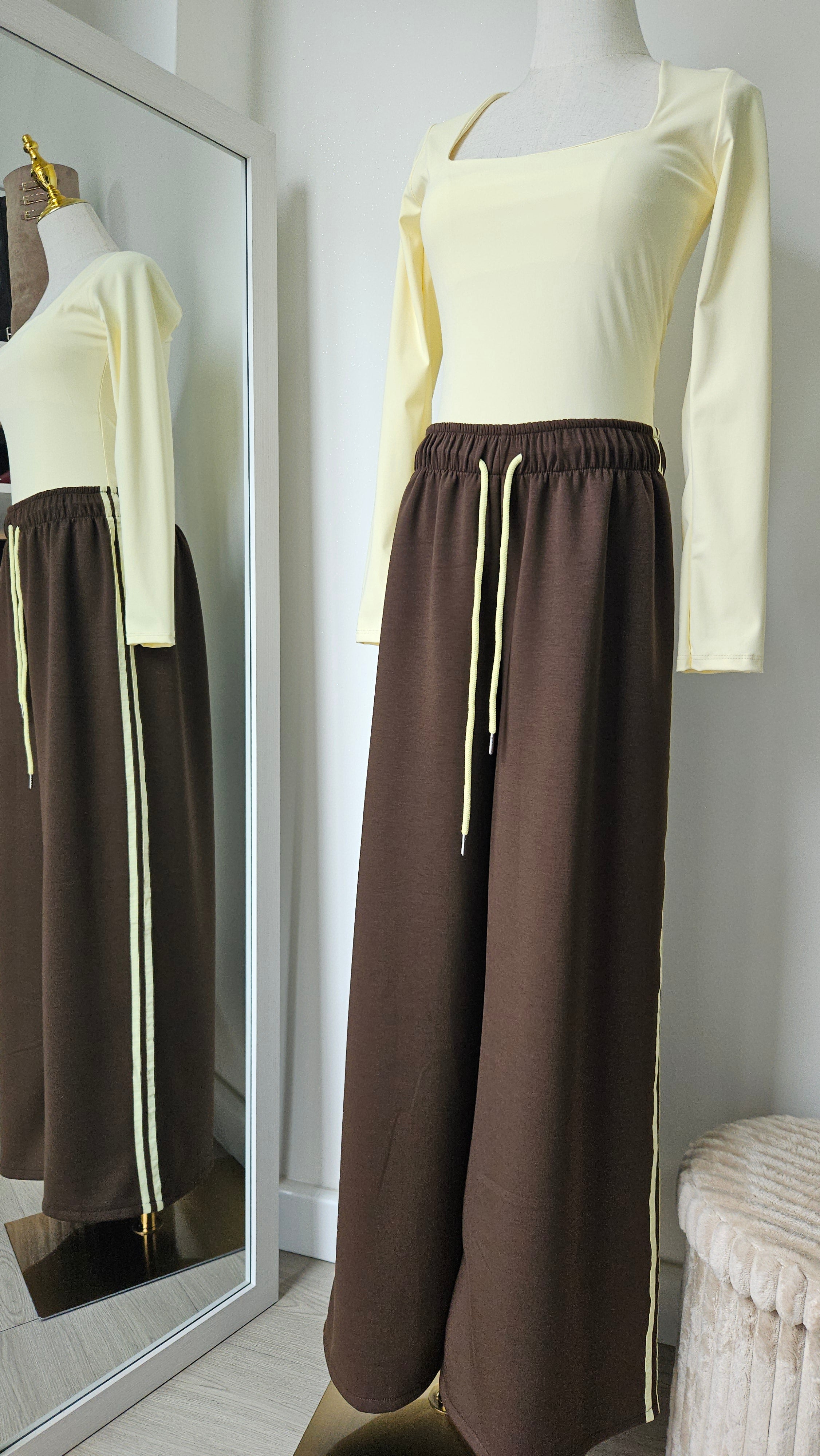 Marrone e righe giallo burro